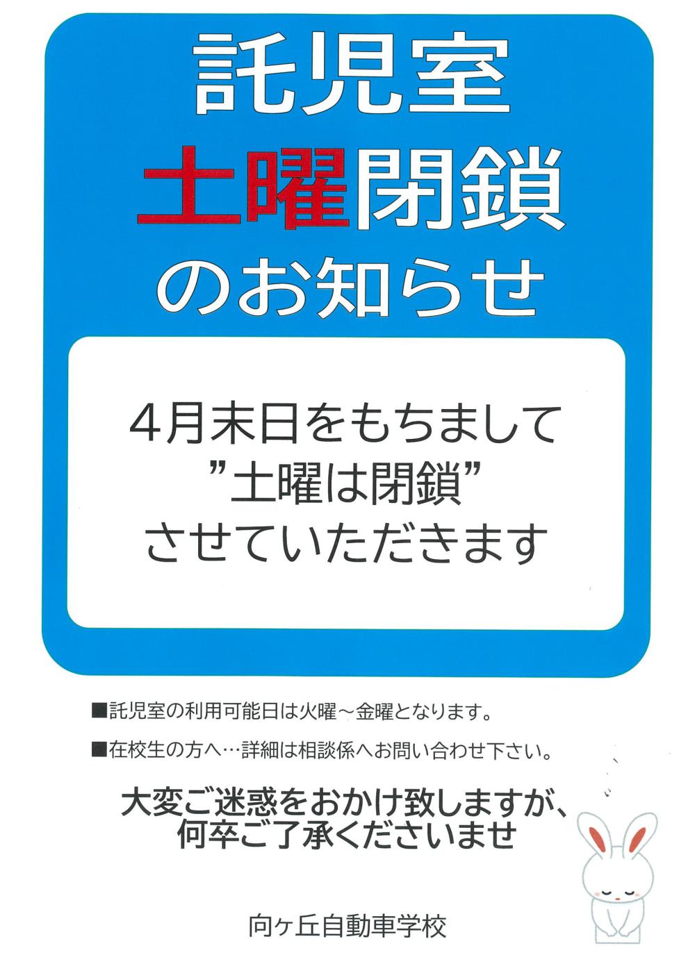 5月2日(土)から託児室は土曜閉鎖いたします。